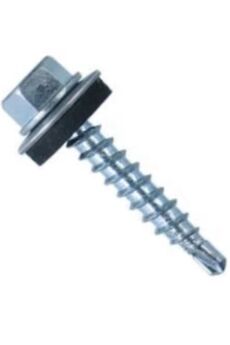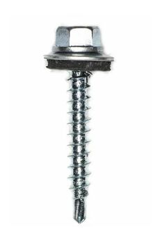Стальные саморезы с шестигранной со сверловидным наконечником, укомплектованные шайбой с резинкой, для крепления кровельных материалов к деревянной обрещетки.