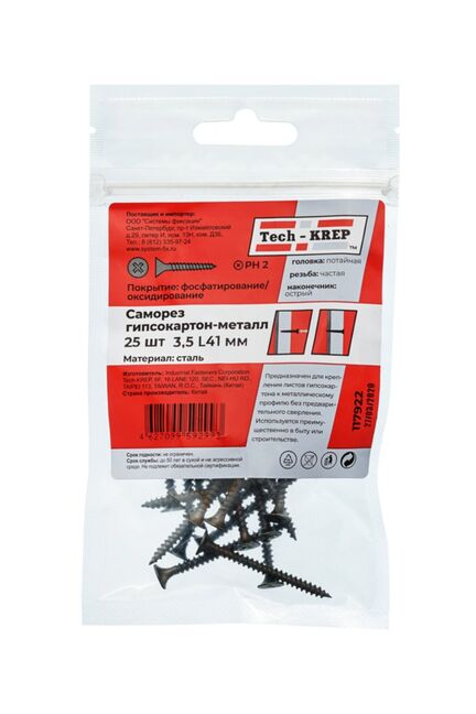 Саморез по металлу 3,5х41 (25 шт) - пакет Tech-Krep в Вяземский