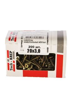 Универсальные саморезы 3х20 мм с желтым покрытием для прочного крепления дерева, ГКЛ, ДСП и профилей. 200 шт, антикоррозийная защита.