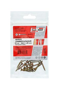 Универсальные саморезы 4,0х25 мм с потайной головкой и антикоррозийным покрытием подходят для дерева, гипсокартона, пластика. 20 штук в упаковке.