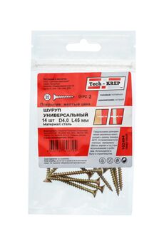 Универсальные саморезы 4,0х45 мм с потайной головкой и желтым цинком для прочного крепления и защиты от коррозии. Упаковка 14 шт.