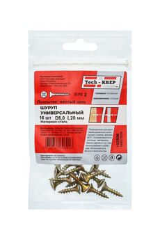 Прочные саморезы с желтым цинковым покрытием, потайная головка, универсальная резьба, 16 шт. Для дерева и дюбелей, удобны в работе.