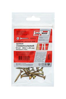 Универсальный саморез 5х30 мм с потайной головкой для прочного монтажа, антикоррозийное покрытие, упаковка 12 шт. Идеален для дерева и гипсокартона.