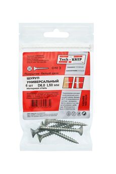 Универсальный саморез 6,0х50 мм с цинковым покрытием и потайной головкой. Прочная сталь, защита от коррозии, упаковка 6 шт. для надежного крепления.