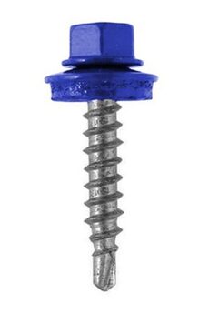 Кровельный саморез 4,8×35 мм с синим покрытием, защитой от коррозии, уплотнительной шайбой EPDM, для крепления профнастила и металлочерепицы.