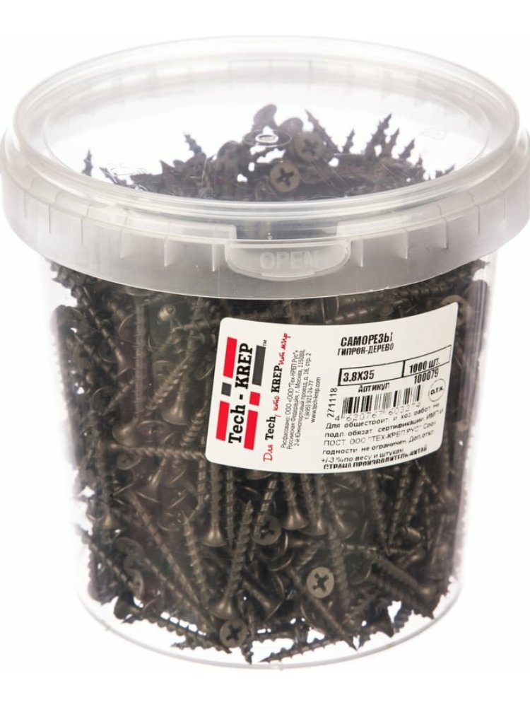 Точность резьбы гарантирует надежную фиксацию, предотвращает растрескивание дерева и повышает долговечность крепления. Упаковка в компактное ведро удобна для хранения и транспортировки, что очень важно на объекте. Выбирая эти саморезы, вы экономите время на работе и получаете профессиональный результат!
