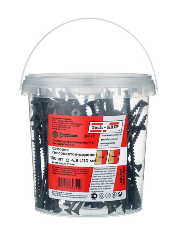 - Размер: 4,8х110 мм, упаковка – 100 шт. в удобном ведре