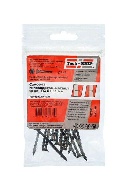 Саморез по металлу 3,5х51 (18 шт) - пакет Tech-Krep в Вяземский