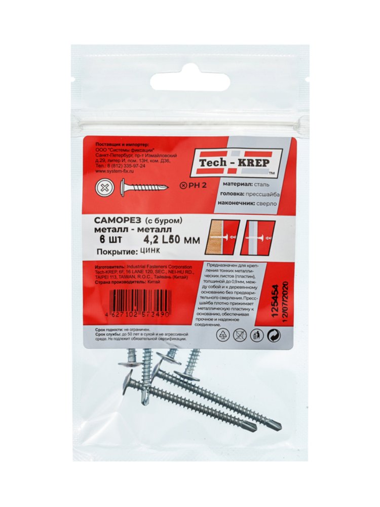 Саморез с п/ш св. 4,2х50 (6 шт) - пакет Tech-Krep в Вяземский