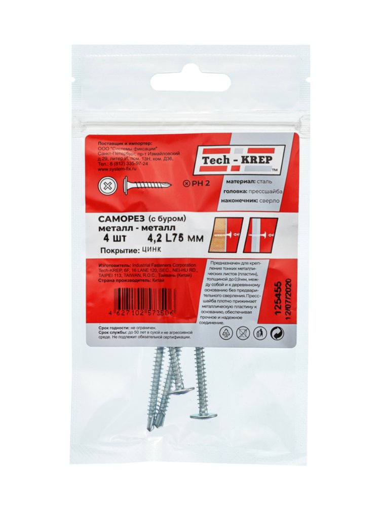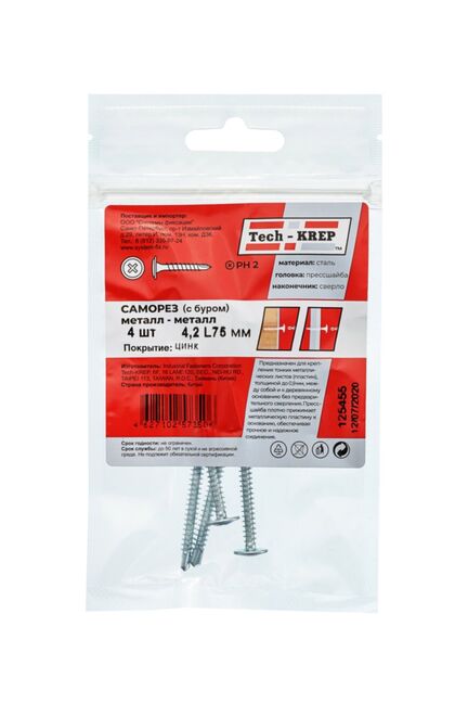 Саморез с п/ш св. 4,2х75 (4 шт) - пакет Tech-Krep в Вяземский