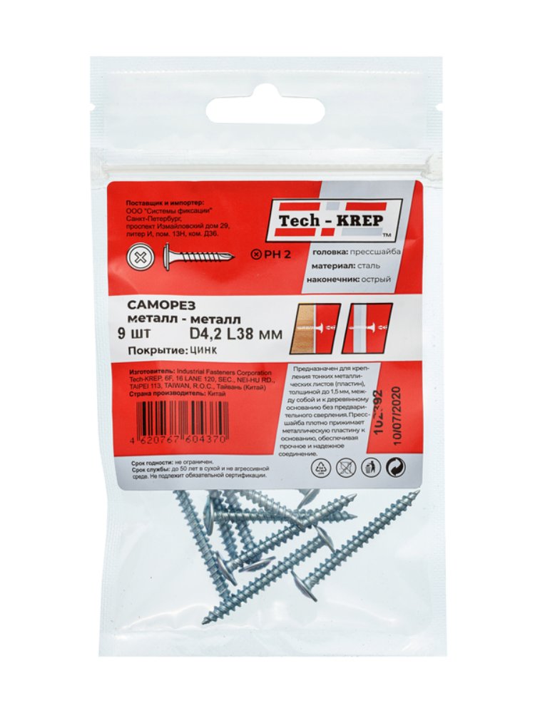 Универсальные саморезы с прессшайбой 4,2х38 от Tech-Krep обеспечивают надежное и прочное крепление листовых материалов к металлическим и деревянным основаниям в строительстве и ремонте. Они идеально подходят для монтажа профилей, тонких металлических конструкций, крепления гипсокартона, OSB, фанеры и других материалов.