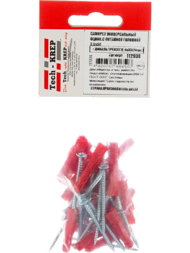 - Дюбель трехсегментный: 6×35 мм