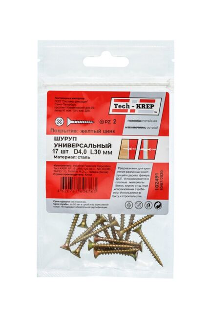 Саморез универс. желтый 4,0х30 пот. гол. (17 шт) - пакет Tech-Krep в Вяземский