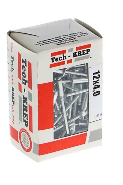 Заклепка 4,0х12 мм от Tech-Krep представляет собой надежный крепежный элемент, предназначенный для создания неразъемных соединений различных материалов. Изделие изготовлено из высококачественного алюминия, что обеспечивает стойкость к коррозии и долговечность. Диаметр заклепки составляет 4 мм, длина — 12 мм, что делает ее подходящей для работы с тонкими листовыми материалами. В комплекте поставляется 100 штук в удобной коробке с окном, что упрощает хранение и транспортировку. Установка производится с помощью заклепочного инструмента, обеспечивая прочное и аккуратное соединение.