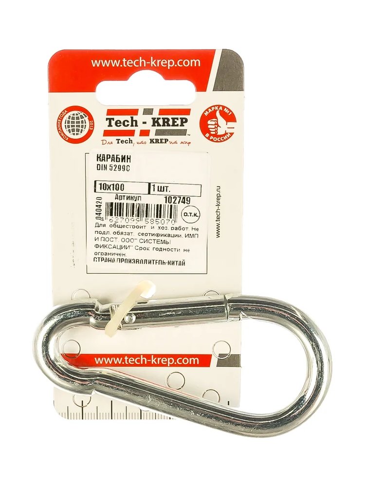 Карабин 10х100 мм DIN 5299 от Tech-Krep представляет собой надежный крепежный элемент, изготовленный из углеродистой стали с цинковым покрытием, что обеспечивает защиту от коррозии. Диаметр прутка составляет 10 мм, длина изделия — 100 мм, что делает его универсальным для различных задач. Карабин оснащен пружинным механизмом, гарантирующим быстрое и удобное соединение элементов. Подходит для фиксации тросов, цепей и других грузов, при этом не требует специального инструмента для установки.