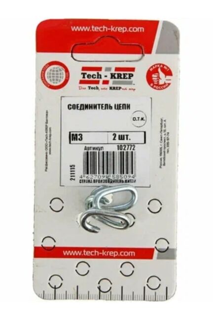 Соединитель цепи М3 (2 шт) Tech-Krep из прочной стали с антикоррозийным покрытием. Надежное соединение цепей, простота монтажа, комплект из 2 штук.