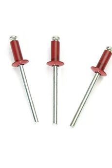 Заклепки алюминий-сталь используются: для неразъёмного соединения листового металла, крепления различных деталей к металлическим конструкциям методом сквозного монтажа. Состоит из распорной втулки и стержня с увеличенным шарообразным концом. Комбинированные заклепки 3,2×8 мм, алюминий/сталь, красное покрытие, 1000 шт — для прочного и эстетичного крепления металлоконструкций.