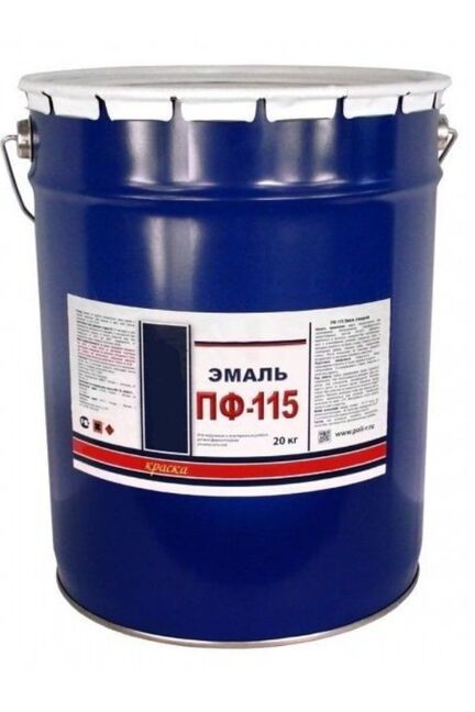 Эмаль ПФ-115 универсальный строительный лакокрасочный материал на основе алкидного лака. Обладает адгезией к различным типам поверхности. Предназначена для окраски деревянных, металлических и других поверхностей снаружи помещений, подвергающихся атмосферным воздействиям, и для окраски внутри помещений (оконные рамы, двери, кирпичные и бетонные поверхности, ДВП, ДСП и др.). Стойкая синяя эмаль 20 кг для дерева, металла, бетона — защищает от влаги и солнца, устойчива к износу, проста в нанесении, быстро сохнет.