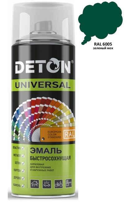 Эмаль аэрозольн. универс. Детон Зеленый мох (6005) 520мл в Вяземский