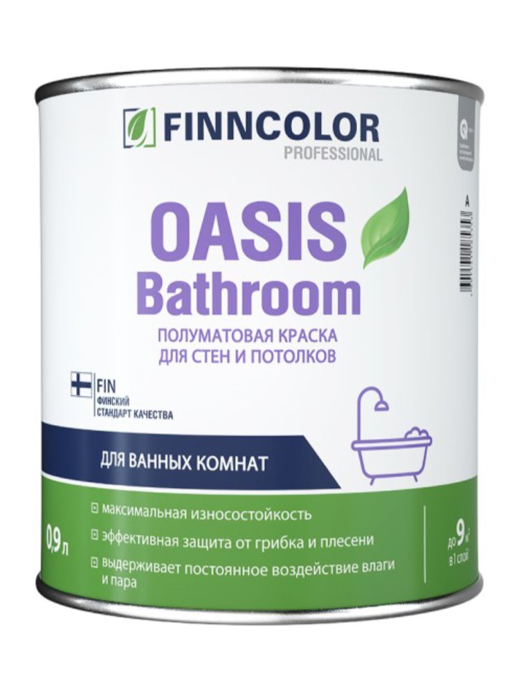 Влагостойкая полуматовая краска, устойчива к мытью и плесени, идеальна для ванных и кухонь, быстро сохнет и обеспечивает длительную защиту.