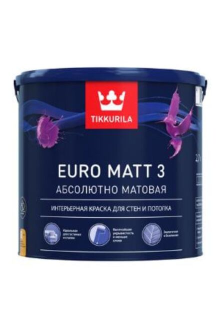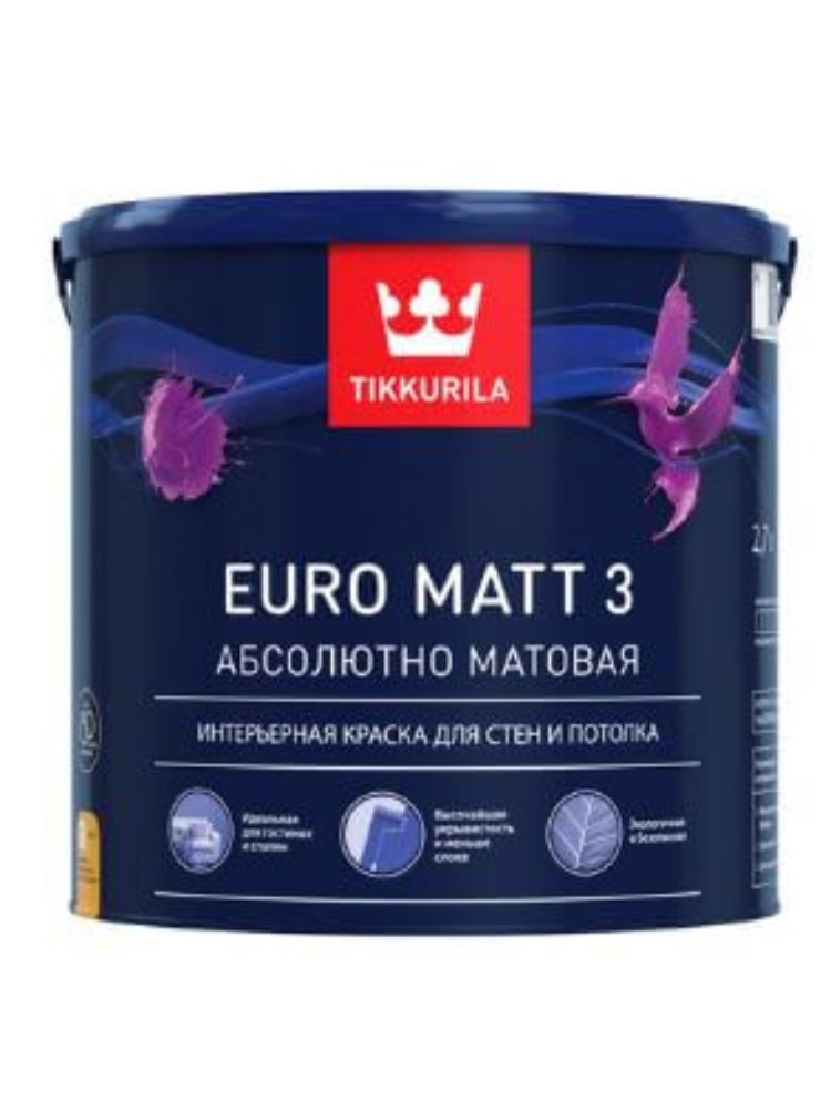 Краска интерьерная EURO MATT 3 A гл/мат 2,7л Tikkurila в Вяземский
