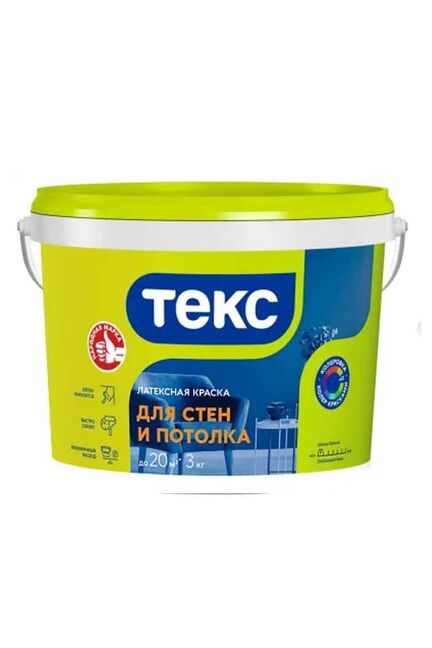 Краска ВД Интерьерн. б/снежн. д/стен и потол. 3кг латексная ТЕКС