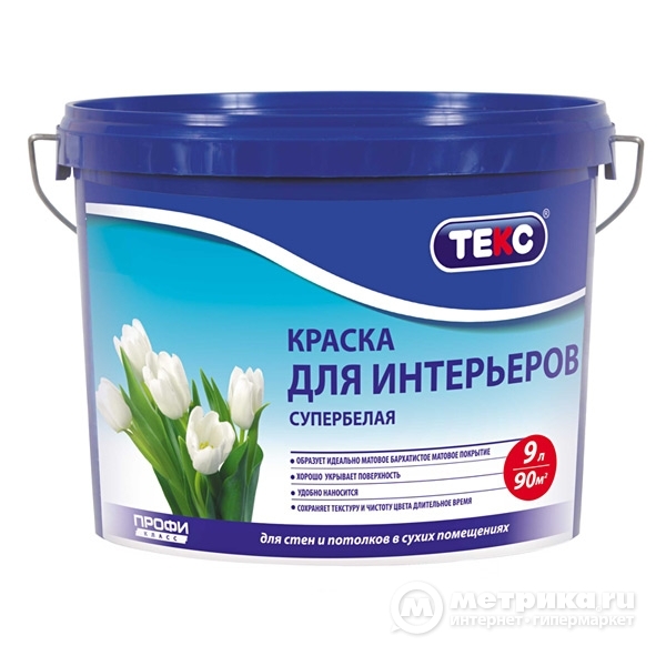 Краска ВД Интерьерн. матов.с/бел. 9л Профи ТЕКС