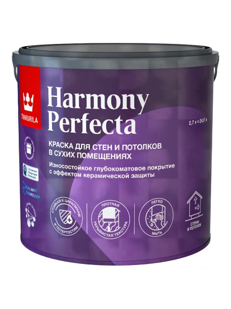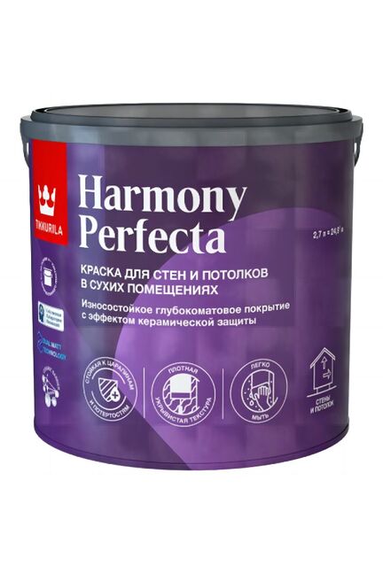 Глубокоматовая влагостойкая краска, устойчива к мытью, быстро сохнет, подходит для стен и потолков в жилых и общественных помещениях.
