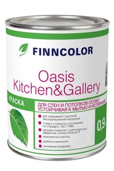 для стен и потолков в сухих и влажных помещениях (кроме ванных комнат) c высокой эксплуатационной нагрузкой (кухни, столовые, вестибюли, коридоры, помещения общественного и коммерческого назначения), требующих частой уборки. Расход 7-9 м²/л - по неровной впитывающей поверхности; 9-11м²/л - по ровной невпитывающей поверхности. Время высыхания 1,5-2 часа перед нанесением следующего слоя. Матовый. Моющееся матовое покрытие, устойчивое к влаге и загрязнениям, идеально для кухни и жилых помещений. Быстро сохнет, безопасно и долговечно.