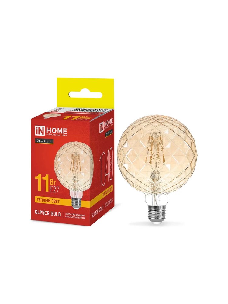 Создайте уникальную атмосферу с помощью декоративной филаментной LED-лампы IN HOME — идеальный выбор для стильного освещения интерьеров квартир, кафе, ресторанов и витрин. Мягкое тёплое свечение 3000K обеспечивает уют и комфорт, а оригинальный кристальный золотистый дизайн корпуса привлекает внимание и подчеркивает современный декор.