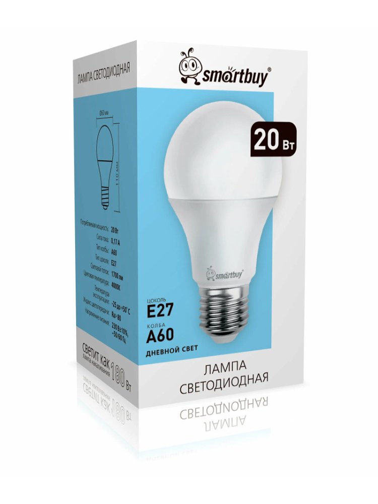 Лампа LED-A60 20Вт 4000K E27 Smartbuy — надежное решение для качественного и экономичного освещения жилых, коммерческих и офисных помещений. Идеальна для замены стандартных ламп накаливания, подходит для светильников с цоколем E27, обеспечивает яркое и равномерное нейтральное освещение без мерцания.