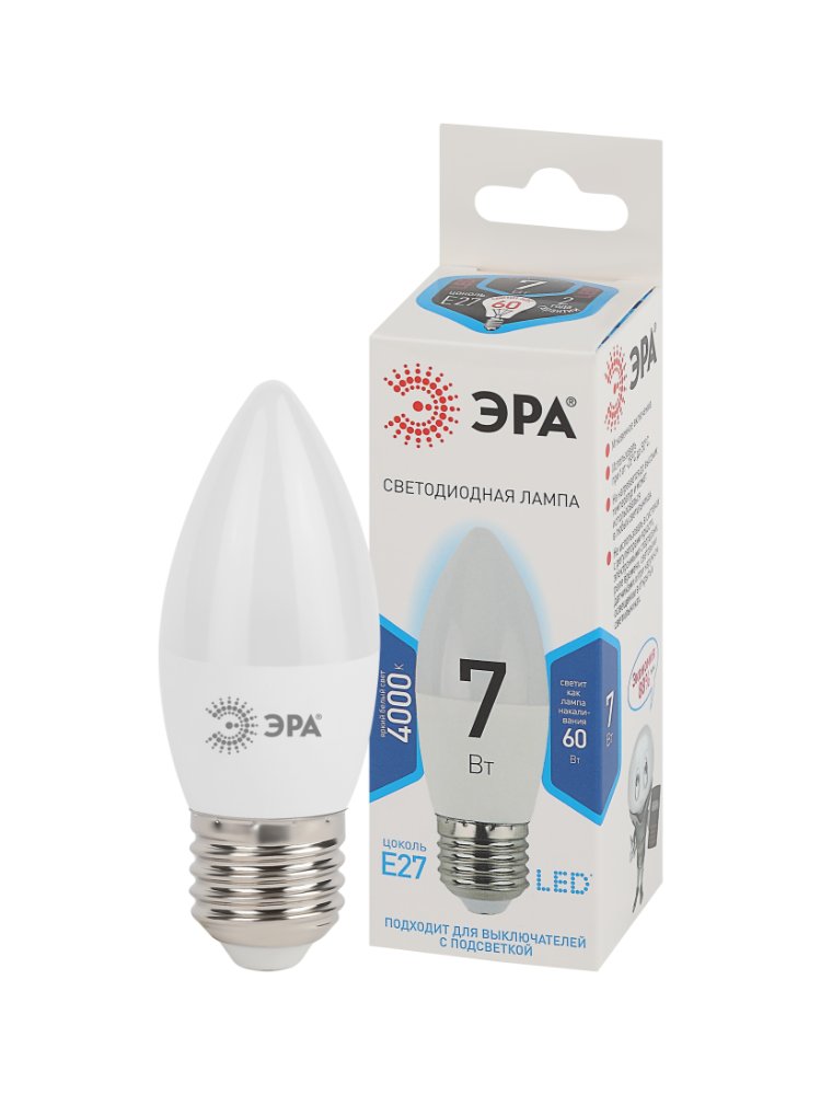 - Потребляемая мощность — 7 Вт, что эквивалентно 60 Вт лампы накаливания
