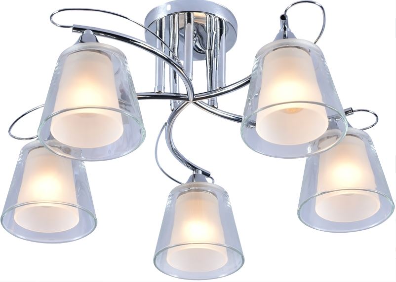 Потолочная люстра на 5 ламп E27, хром, подходит для комнат до 18 м². Простая установка и универсальный дизайн для вашего интерьера.
