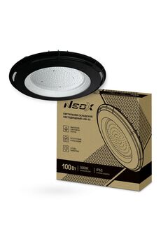 Светильник складской светодиодный LHB-02 100Вт 120гр 230В 5000К 10500Лм 105Лм/Вт IP65 без пульсации NEOX - это эффективный и надежный источник света для освещения складских и производственных помещений. Он имеет мощность 100 Вт и световой поток 10500 Лм, что обеспечивает яркое и равномерное освещение на площади до 100 кв.м. Светильник оснащен светодиодами с цветовой температурой 5000К, что соответствует натуральному белому свету. Он имеет коэффициент цветопередачи более 80, что обеспечивает высокое качество света и отличную цветопередачу. Светильник имеет угол раскрытия света 120 градусов, что обеспечивает широкий охват освещения. Он также имеет высокий коэффициент светового потока 105 Лм/Вт, что позволяет экономить электроэнергию и снижать расходы на электроэнергию. Светильник имеет класс защиты IP65, что обеспечивает его защиту от пыли и влаги. Он идеально подходит для использования в условиях повышенной влажности и пыли. LED светильник 100Вт, 10500Лм, IP65, без пульсации, нейтральный свет 5000К — для промы