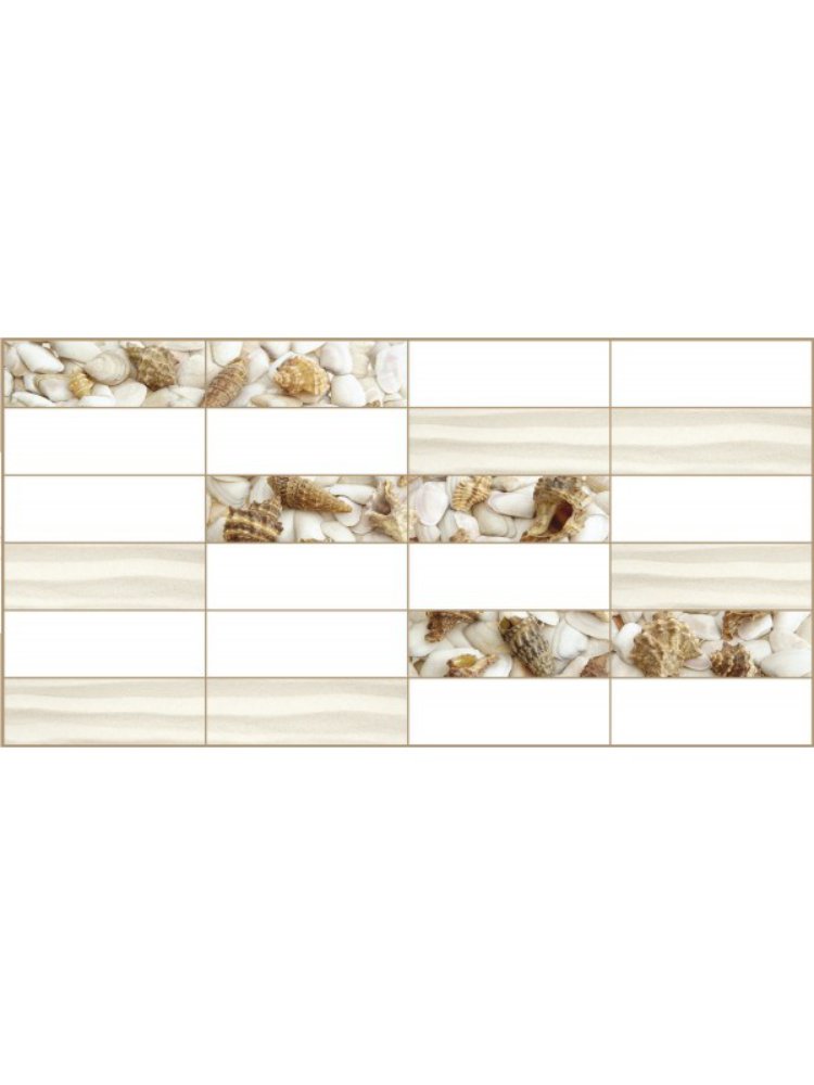 Листовые панели влагостойки и прекрасно моются. При минимальных затратах возможно быстрое создание современного, комфортного и уютного дома. Влагостойкая ПВХ панель 955×480 мм с дизайном плитки «Песчанный берег», проста в монтаже и уходе, идеальна для отделки стен в любых помещениях.