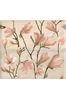 Декор-панно с магнолией, размер 400x450 мм, комплект из 2 плиток, влагостойкая керамика для стильной отделки стен в ванной и кухне.