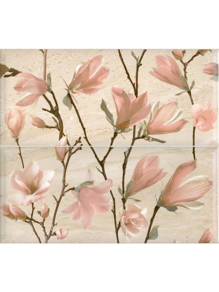 Элегантное панно с магнолией преображает любую ванную или кухню, создавая атмосферу уюта и современного стиля. Комплект из двух плиток размером 400х450 мм разработан для декорирования стен, делая интерьер выразительным и уникальным.