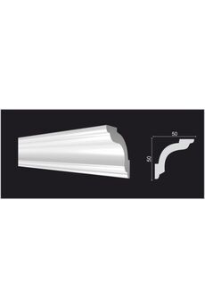 Легкий и прочный плинтус 50×50×2000 мм, белый, для аккуратного декора стыков потолка, легко монтируется и готов к окраске.