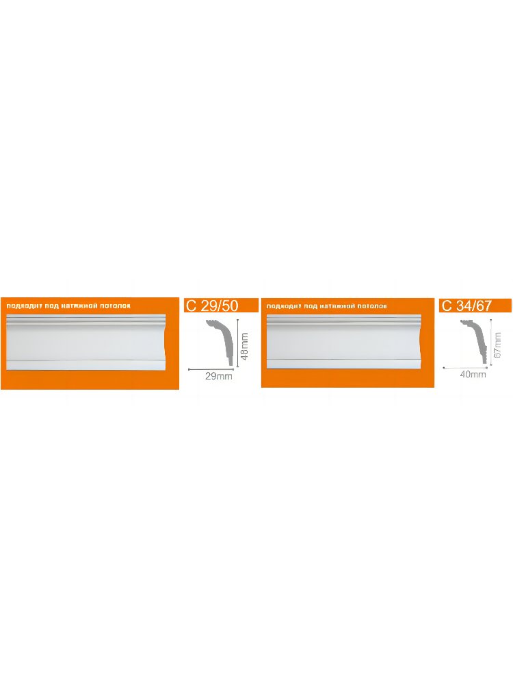 Плинтус потолочный С34/67 (40*67*2000) белый (54) Подходит под натяжной потолок в Вяземский