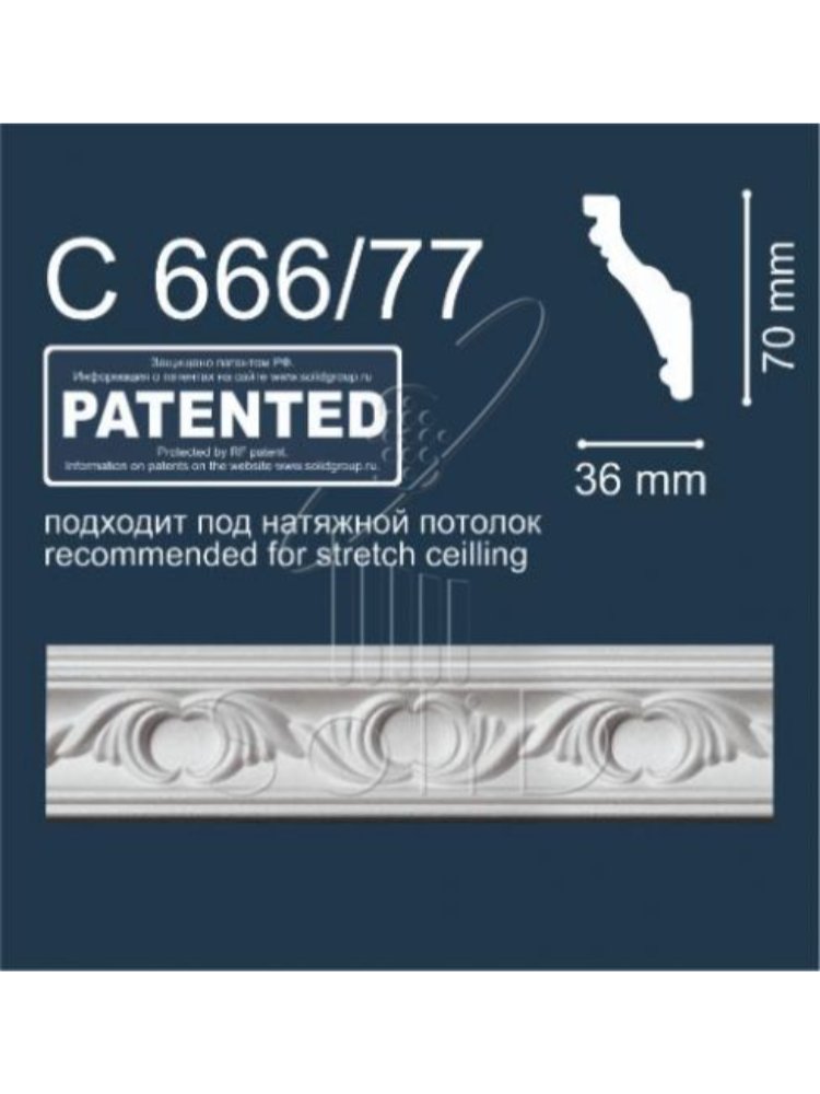 Плинтус потолочный С666/77 (2м/ 70x36мм) (40) Подходит под натяжной потолок в Вяземский