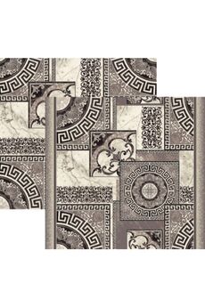 Износостойкий ковролин с бежевой основой и серой геометрией, ширина 3,5 м, легко укладывается, подходит для жилых и офисных помещений.