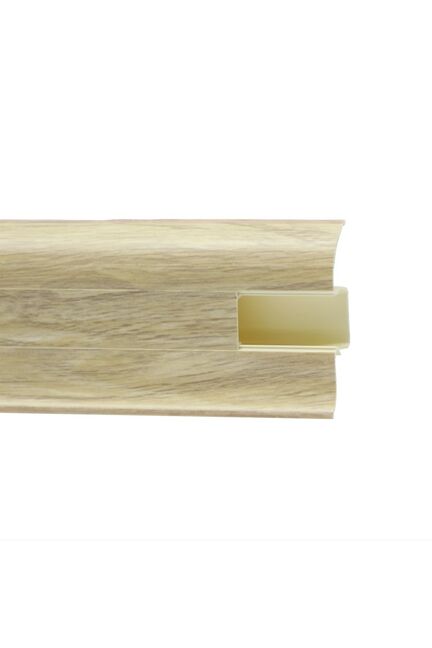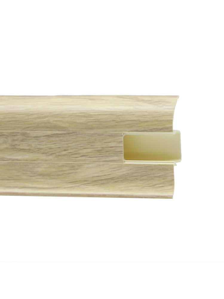 Утонченный и высокий профиль (58 мм) с острыми краями. Благодаря съёмной панели монтаж электрических проводов, покраска стен, оклеивание обоями возможны без демонтажа профилей. Конструкция позволяет монтировать и демонтировать плинтус без использования инструментов. Существует возможность размещения большого количества проводов, в том числе после монтажа. Специальная двухслойная технология: помимо слоя краски, дополнительно покрывается специальным лаком, благодаря чему его покрытие становится однородным, а это дополнительно защищает изделие от разного вида механических повреждений и вредного воздействия лучей УФ. Благодаря эластичному материалу, плинтус идеально прилегает даже к неровностям стен и полов. Плинтус Wimar "Дуб Гроссо" 58 мм, 2,5 м из МДФ. Скрывает стыки, защищает от пыли, легко монтируется, подходит для любых напольных покрытий.