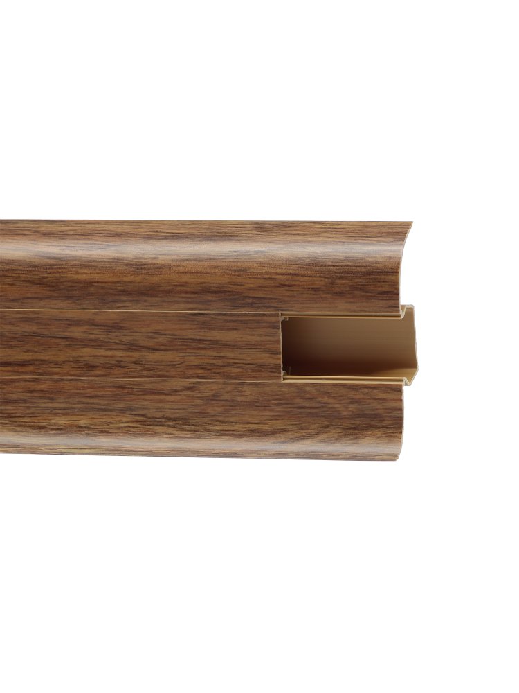 Элегантное, современное решение для завершения интерьера — напольный плинтус из прочного материала декором «Дуб Дворцовый». Идеально подходит для маскировки стыков между стенами и полом при укладке ламината, паркета или ковролина, а также для удобной прокладки кабелей благодаря специальному кабель-каналу.