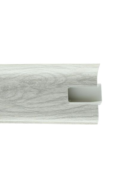Утонченный и высокий профиль (58 мм) с острыми краями. Благодаря съёмной панели монтаж электрических проводов, покраска стен, оклеивание обоями возможны без демонтажа профилей. Конструкция позволяет монтировать и демонтировать плинтус без использования инструментов. Существует возможность размещения большого количества проводов, в том числе после монтажа. Специальная двухслойная технология: помимо слоя краски, дополнительно покрывается специальным лаком, благодаря чему его покрытие становится однородным, а это дополнительно защищает изделие от разного вида механических повреждений и вредного воздействия лучей УФ. Благодаря эластичному материалу, плинтус идеально прилегает даже к неровностям стен и полов. Стильный ПВХ-плинтус 58 мм, дуб веронский, длина 2,5 м, влагостойкий, с каналом для кабеля – идеально для современного интерьера.