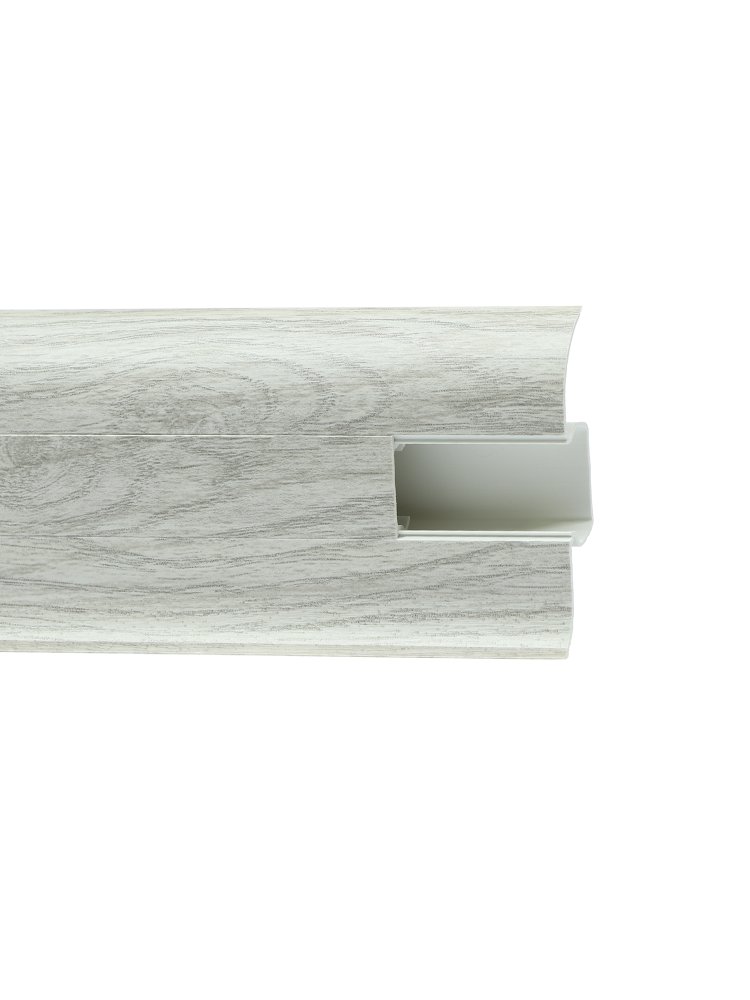Современное решение для стильной отделки интерьера – износостойкий и влагостойкий плинтус в оттенке дуба, идеально подходит для жилых и коммерческих помещений. Эффектно завершает оформление пола, скрывает неровности и провода.