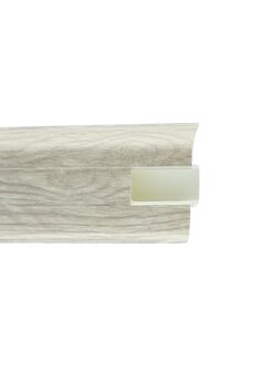 Утонченный и высокий профиль (58 мм) с острыми краями. Благодаря съёмной панели монтаж электрических проводов, покраска стен, оклеивание обоями возможны без демонтажа профилей. Конструкция позволяет монтировать и демонтировать плинтус без использования инструментов. Существует возможность размещения большого количества проводов, в том числе после монтажа. Специальная двухслойная технология: помимо слоя краски, дополнительно покрывается специальным лаком, благодаря чему его покрытие становится однородным, а это дополнительно защищает изделие от разного вида механических повреждений и вредного воздействия лучей УФ. Благодаря эластичному материалу, плинтус идеально прилегает даже к неровностям стен и полов. Стильный плинтус из ПВХ "Дуб северный", 58 мм, 2,2 м, влагостойкий, с кабель-каналом, быстро монтируется, подходит для дома и офиса.