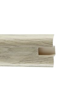 Утонченный и высокий профиль (58 мм) с острыми краями. Благодаря съёмной панели монтаж электрических проводов, покраска стен, оклеивание обоями возможны без демонтажа профилей. Конструкция позволяет монтировать и демонтировать плинтус без использования инструментов. Существует возможность размещения большого количества проводов, в том числе после монтажа. Специальная двухслойная технология: помимо слоя краски, дополнительно покрывается специальным лаком, благодаря чему его покрытие становится однородным, а это дополнительно защищает изделие от разного вида механических повреждений и вредного воздействия лучей УФ. Благодаря эластичному материалу, плинтус идеально прилегает даже к неровностям стен и полов. ПВХ-плинтус 58 мм цвета "Сосна серая", с кабель-каналом, длина 2,2 м, влагостойкий. Простой монтаж и эстетика для любого интерьера.