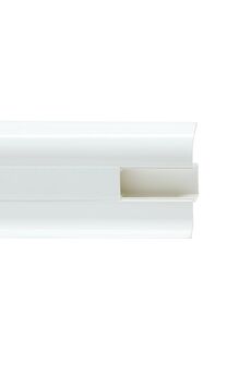 Утонченный и высокий профиль (58 мм) с острыми краями. Благодаря съёмной панели монтаж электрических проводов, покраска стен, оклеивание обоями возможны без демонтажа профилей. Конструкция позволяет монтировать и демонтировать плинтус без использования инструментов. Существует возможность размещения большого количества проводов, в том числе после монтажа. Специальная двухслойная технология: помимо слоя краски, дополнительно покрывается специальным лаком, благодаря чему его покрытие становится однородным, а это дополнительно защищает изделие от разного вида механических повреждений и вредного воздействия лучей УФ. Благодаря эластичному материалу, плинтус идеально прилегает даже к неровностям стен и полов. Белый пластиковый плинтус 58 мм, длина 2,2 м, скрывает кабели, устойчив к влаге и механическим воздействиям, легко монтируется и долговечен.