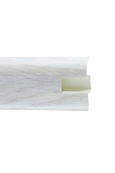 Утонченный и высокий профиль (58 мм) с острыми краями. Благодаря съёмной панели монтаж электрических проводов, покраска стен, оклеивание обоями возможны без демонтажа профилей. Конструкция позволяет монтировать и демонтировать плинтус без использования инструментов. Существует возможность размещения большого количества проводов, в том числе после монтажа. Специальная двухслойная технология: помимо слоя краски, дополнительно покрывается специальным лаком, благодаря чему его покрытие становится однородным, а это дополнительно защищает изделие от разного вида механических повреждений и вредного воздействия лучей УФ. Благодаря эластичному материалу, плинтус идеально прилегает даже к неровностям стен и полов. ПВХ плинтус 58 мм с каналом для кабеля, влагостойкий, легко монтируется. Современный мраморный дизайн подходит для жилых и коммерческих помещений.