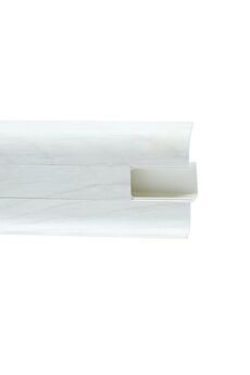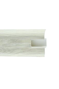 Утонченный и высокий профиль (58 мм) с острыми краями. Благодаря съёмной панели монтаж электрических проводов, покраска стен, оклеивание обоями возможны без демонтажа профилей. Конструкция позволяет монтировать и демонтировать плинтус без использования инструментов. Существует возможность размещения большого количества проводов, в том числе после монтажа. Специальная двухслойная технология: помимо слоя краски, дополнительно покрывается специальным лаком, благодаря чему его покрытие становится однородным, а это дополнительно защищает изделие от разного вида механических повреждений и вредного воздействия лучей УФ. Благодаря эластичному материалу, плинтус идеально прилегает даже к неровностям стен и полов. Лёгкий и прочный плинтус ПВХ 58 мм, длина 2,2 м, кабель-канал, влагостойкий, дуб снежный, легко монтируется, подходит для любых помещений.